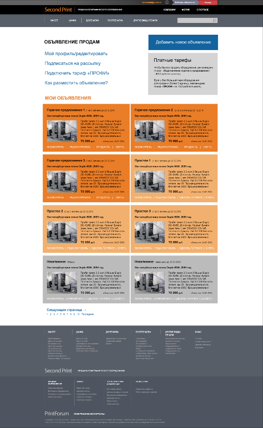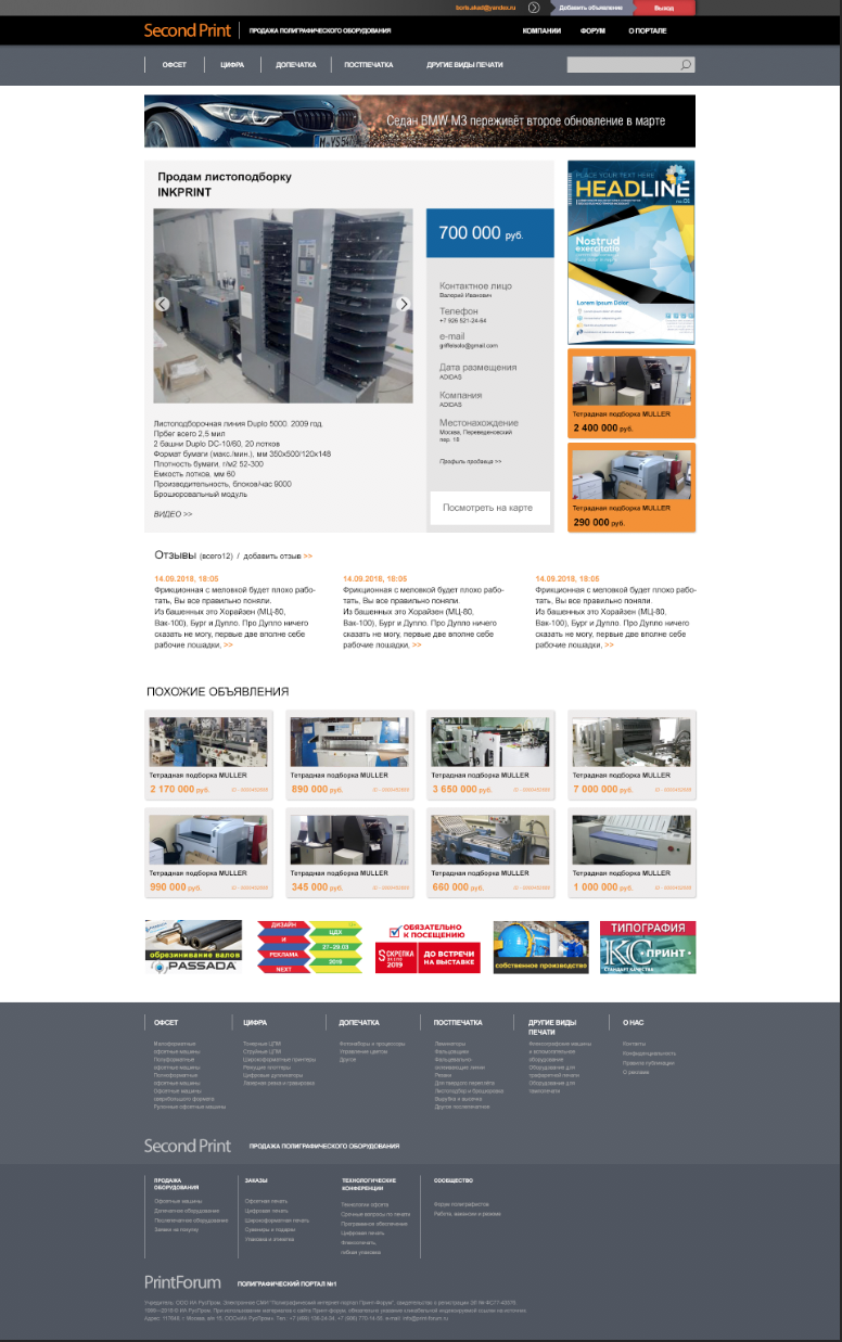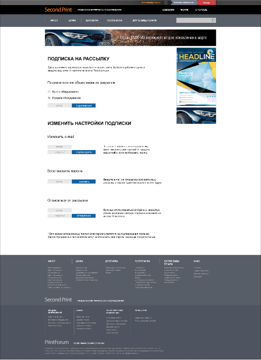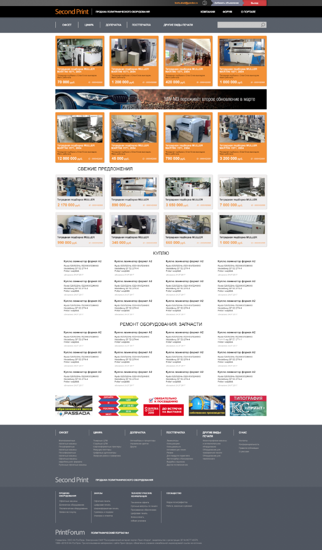 В рамках популярного портала по вопросам полиграфии print-forum.ru много лет существует сайт Second-print.ru. На нём профессионалы-полиграфисты могут продать или приобрести оборудование для типографий. Так вышло, что оформление интерфейса на сайте не менялось с времени его создания и мы с интересом принялись за эту задачу.
